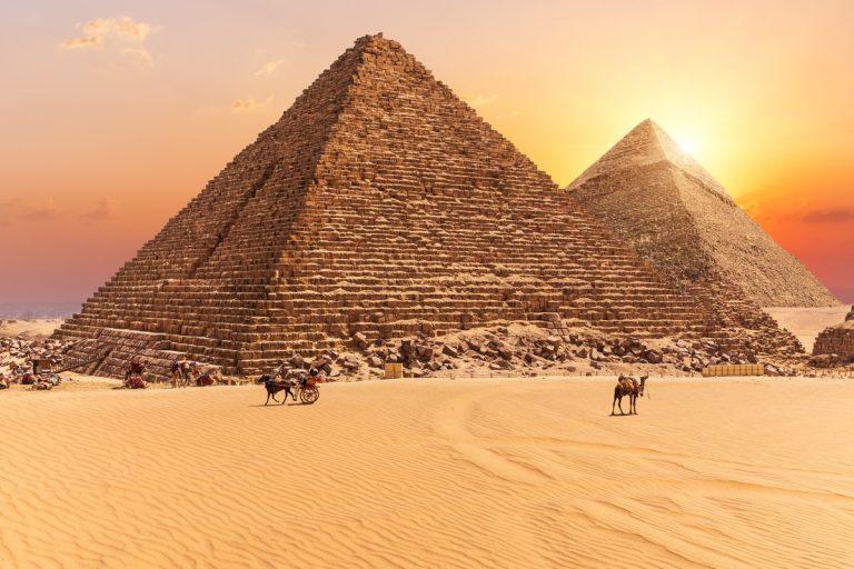 Genießen Sie den Panoramablick auf die Pyramiden von Gizeh, eines der bekanntesten Symbole Ägyptens.