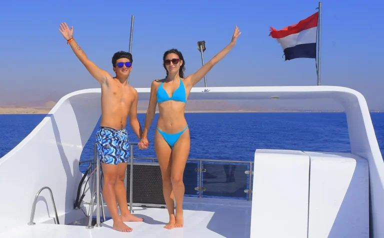 After your snorkeling adventure, unwind on the sundeck as you cruise back, capturing the stunning coastal views of Sharm El Sheikh.
